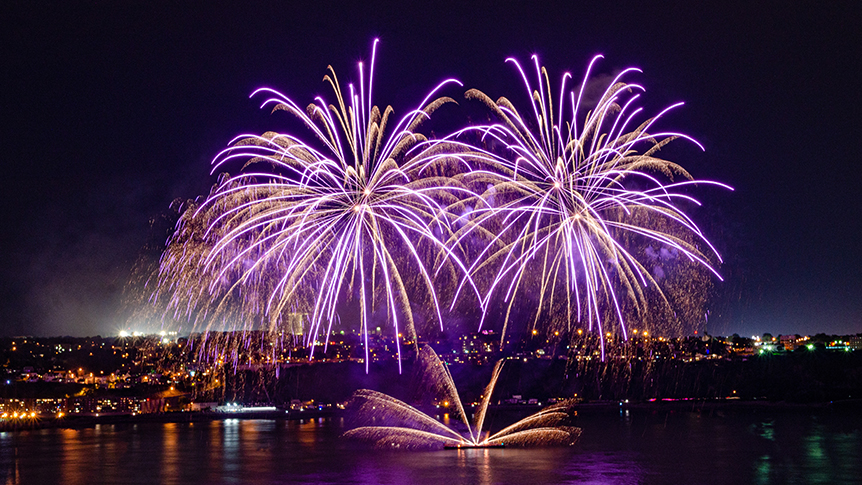 At 10 :00 PM, let yourself be mesmerized by the pyromusical show of the Grands Feux Loto-Québec from the best viewpoint!