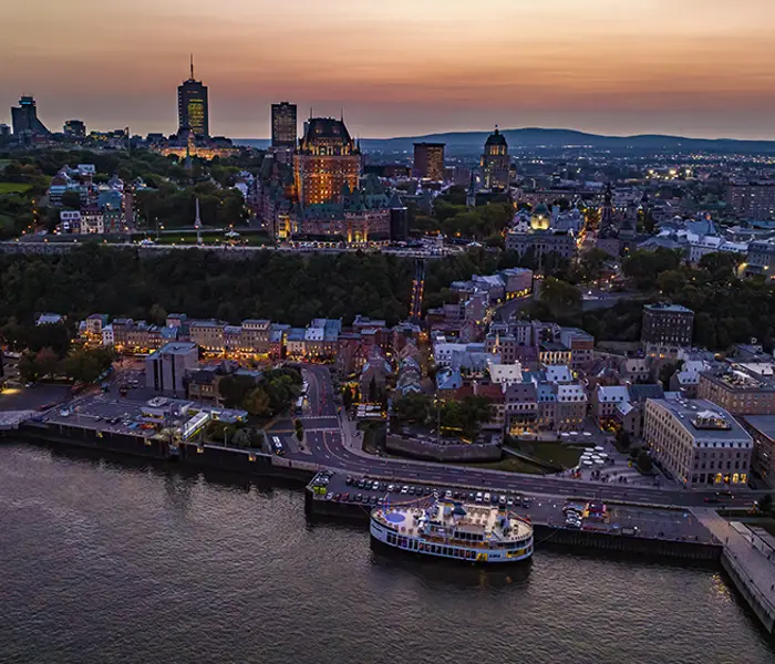 At one of our best tables, you will be seduced by the bistronomic cuisine of our executive chef and his brigade. Experience a magical moment on the St. Lawrence River as Old Quebec and the Château Frontenac light up before your eyes.