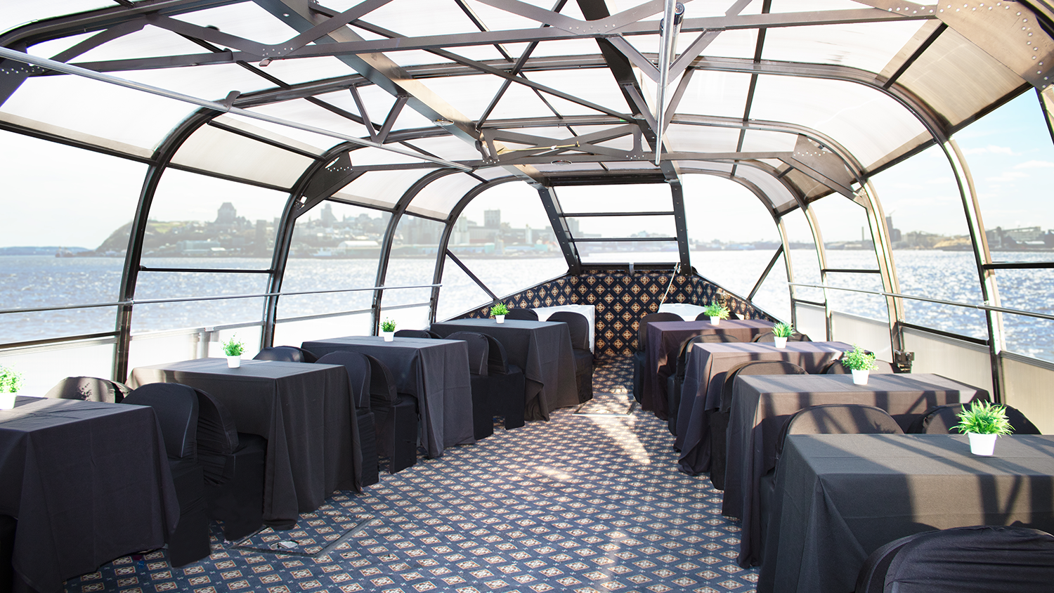 Le AML Suroît est un navire qui vous impressionnera par la beauté de sa ligne fuselée et ses espaces vitrés. Pouvant accueillir jusqu'à 121 passagers, le Suroît se distingue grâce à sa salle panoramique entièrement vitrée et sa terrasse extérieure.