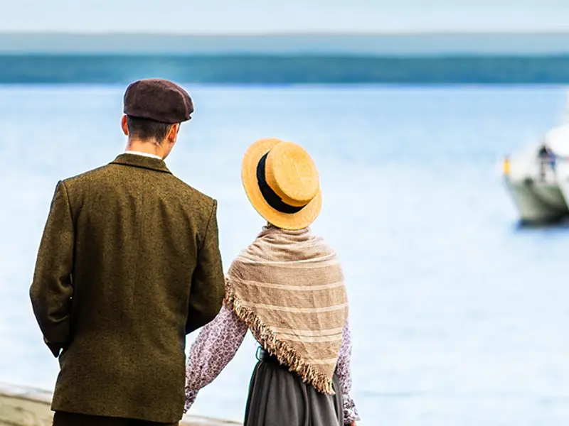 Débutez votre voyage par une croisière incomparable jusqu’à Grosse-Île. Pour nos clients en Première Classe, il sera possible de visiter la timonerie et de prendre un cliché avec notre capitaine. En compagnie d’un guide de Parcs Canada dédié à votre groupe restreint, vous aurez ensuite la chance d’effectuer une visite personnalisée du site. Vous pourrez ainsi plonger dans l’histoire tragique et captivante de cette île, témoin des épidémies de typhus et de choléra qui ont eu lieu dans la première moitié du 19e siècle. Tout au long de la journée, vous aurez l’occasion de rencontrer des personnages ayant marqué l’histoire de l’île en revivant notamment une inspection médicale telle qu’elle se déroulait au début du 20e siècle. Vivez une expérience immersive en Première Classe pour entendre des histoires inédites et visiter des lieux qui sont exclusifs à cette expérience. Cette visite est réservée pour 20 passagers par jour uniquement. À quoi s’attendre Croisière vers Grosse-Île: Embarquez pour une croisière d’exception qui vous guidera vers Grosse-Île. Vous pourrez même rencontrer les capitaines Lachance en exclusivité. Guide dédié : Un guide de Parcs Canada s’occupera spécialement de votre petit groupe. Contenu de visite exclusif : Accédez, avec votre guide, à des lieux exclusifs à cette expérience. Expérience immersive : Prenez le temps de vivre une scène quotidienne d’inspection médicale comme elle se déroulait à l’époque. Plongée dans l’histoire : Faites un bond dans le passé lors d’une journée riche en histoire et apprenez-en plus sur notre héritage. Entrée gratuite aux sites de Parcs Canada Dans le cadre de l’initiative du gouvernement du Canada Laissez-passer Un Canada Fort, Parcs Canada vous offre l’entrée gratuite au Lieu historique national de la Grosse-Île-et-le-Mémorial-des-Irlandais du 20 juin au 2 septembre inclusivement. Les frais de transport par bateau et les frais d’activités spéciales sont en vigueur. Prêt pour une expérience exceptionnelle en Première Classe ? Réservez dès maintenant pour une aventure privilégiée sur Grosse-Île avec les Croisières Lachance, et laissez-vous envoûter par leurs récits passionnés et captivants. -
