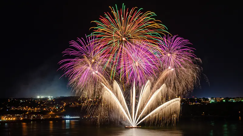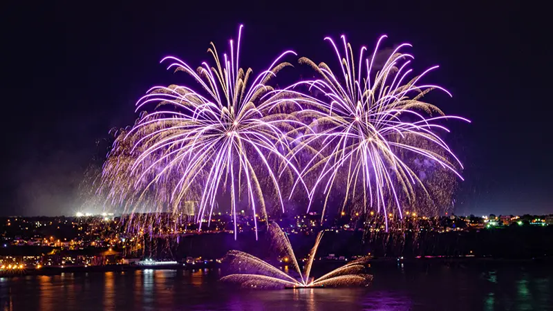 À 22 h 00, émerveillez-vous devant le spectacle pyromusical des Grands Feux Loto-Québec à partir du meilleur point de vue !