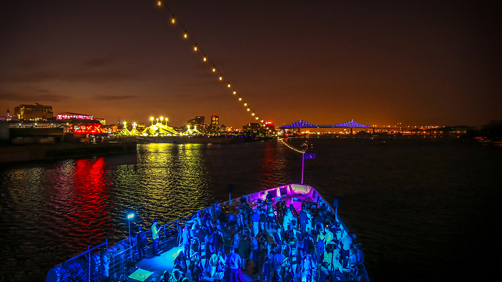Laissez-vous éblouir par un coucher de soleil spectaculaire sur la métropole, alors que le bateau vogue devant des attractions phares comme la Biosphere et le pont Jacques Cartier. Puis, enflammez la plus grande piste de danse flottante en ville avec vos amis au rythme des succès de l’heure joués par notre DJ.