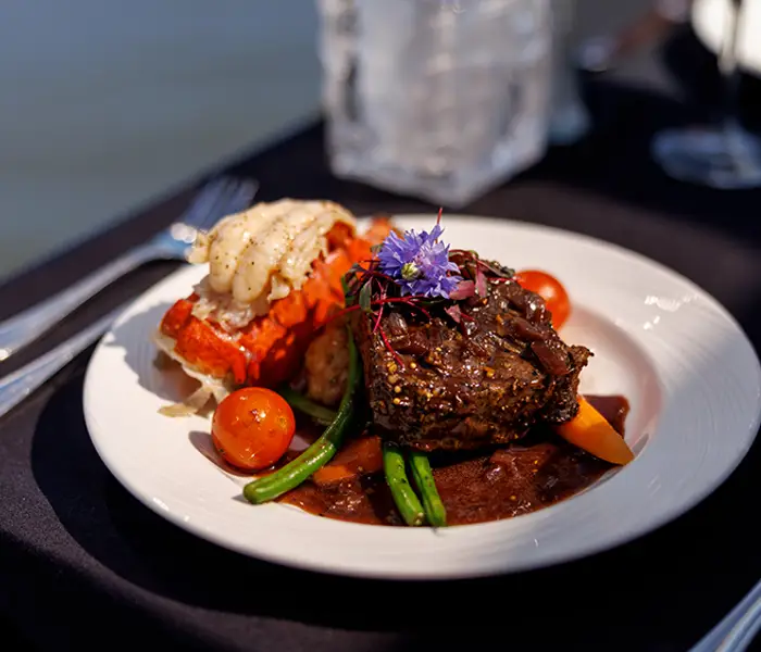 Partez en croisière et savourez d'abord un succulent repas 3 services tout en profitant du magnifique panorama sur la ville Québec. Par la suite, vous pourrez vous détendre sur l'une de nos terrasses ou encore danser sur le pont principal au rythme de la musique de notre DJ.