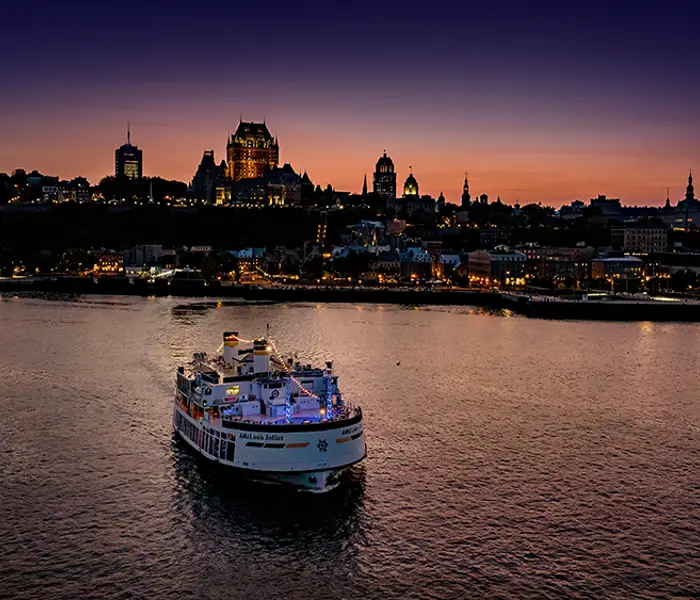 Montez à bord du AML Louis Jolliet pour savourer les délices culinaires de notre chef. Éloignez-vous des foules et admirez les feux d'artifice en direct du fleuve Saint-Laurent : le meilleur point de vue qui soit!