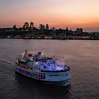 À l'une de nos meilleures tables, vous serez séduit par la cuisine bistronomique locale de notre chef exécutif et sa brigade. Vivez un moment magique sur le fleuve Saint-Laurent alors que le Vieux-Québec et le Château Frontenac s'illuminent sous vos yeux. Montez à bord pour vivre une expérience VIP mémorable. Entrée prioritaire à bord Cocktail de bienvenue, table d'hôte 5 services, une bouteille de vin pour deux personnes et un digestif Musique live pendant le souper, pour une atmosphère feutrée et vibrante Passage sous le pont de Québec et point de vue exceptionnel sur la ville Ambiance festive au cœur du Vieux-Québec Animation et bars sur les terrasses extérieures -