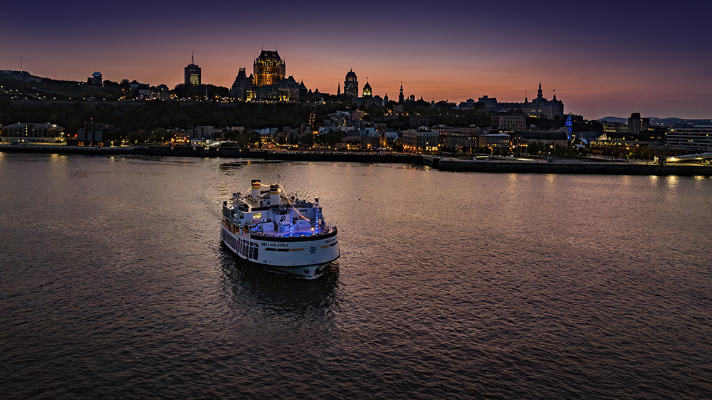 Célébrez le temps des Fêtes sur le fleuve Saint-Laurent à bord du splendide AML Louis Jolliet! Préparez-vous à vivre une soirée mémorable qui débute par un cocktail, suivi d’un repas table d’hôte 4 services concocté par notre chef exécutif spécialement pour les Fêtes. Passez devant la vieille capitale pendant que vous vous régalez de notre menu spécial de Noël, et terminez la soirée sur la piste de danse animée par notre DJ. Le souper-croisière de Noël, c’est une soirée clé en main organisée pour vous! C’est aussi la parfaite occasion pour passer du temps de qualité avec les gens qui vous sont chers en cette période des Fêtes. À quoi s’attendre : Navire tout équipé : Montez à bord du AML Louis Jolliet, un navire qui se distingue par ses multiples bars, son accès à une piste de danse et son personnel attentionné. Ses quatre ponts vous proposent des ambiances uniques et un confort inégalé pendant votre croisière. Durée : Ce souper-croisière de Noël est d’une durée totale d’environ 3h00. Une fois de retour à quai, restez à bord jusqu’à minuit pour continuer à profiter de la soirée. Ambiance festive : Une fois à bord, notre décor et notre ambiance chaleureuse du temps des Fêtes vous mettront assurément dans l’esprit de Noël. Repas bistronomique : Commencez la soirée par un cocktail de bienvenue, suivi d’un menu table d’hôte 4 services du temps des fêtes, concocté spécialement par notre chef exécutif. Retrouvez toute la qualité de notre menu bistronomique inspiré du terroir, à saveur de Noël. Soirée mémorable : Après le repas, profitez de la soirée dansante! Notre DJ vous fera bouger au rythme des meilleurs hits sur la piste de danse, et ce, jusqu’à minuit. Souvenirs assurés : Vous aurez la chance de prendre des photos et de créer des souvenirs inoubliables dans un magnifique décor des Fêtes. Commodités à bord : Service de vestiaire inclus et plusieurs salles de bain complètes à bord. -